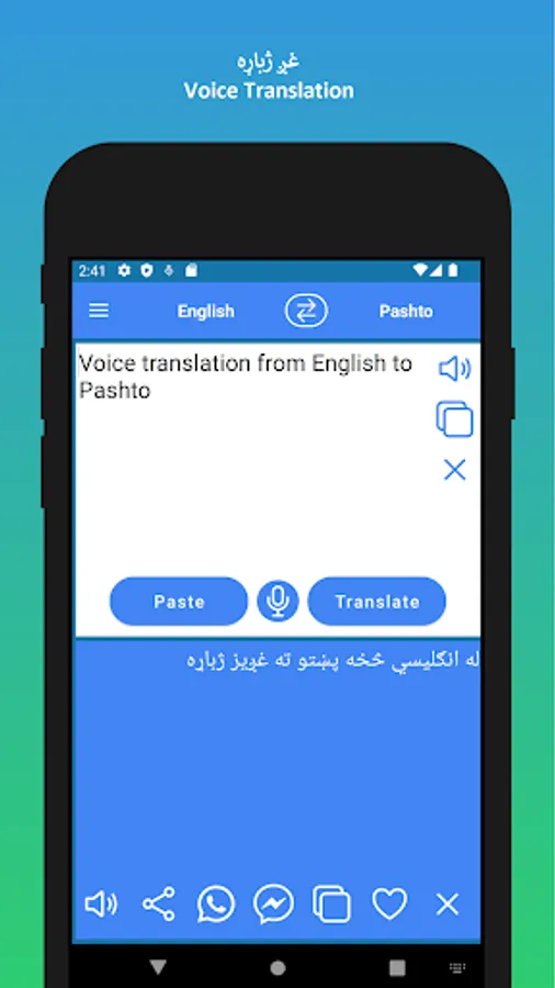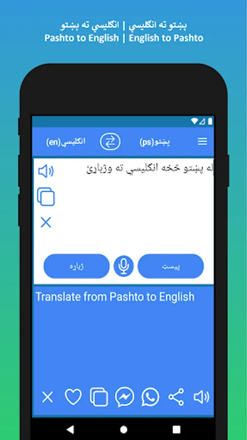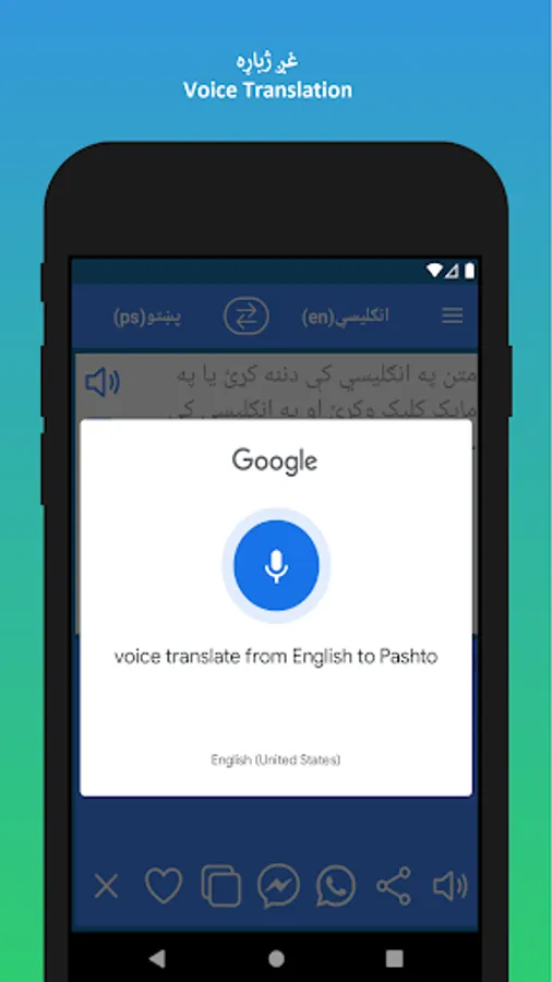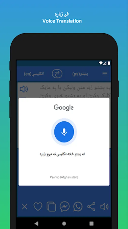 ✓ 4. Voice typing in Pashto. Voice Translation from Pashto to English.