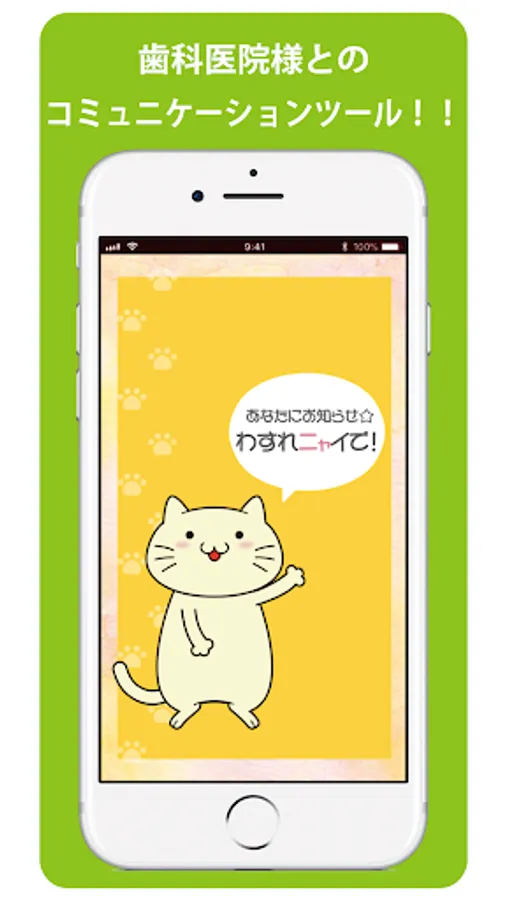 【わすれニャイで!】は、このうっかり忘れを防止する目的の為に、歯科医院様と患者様が、
