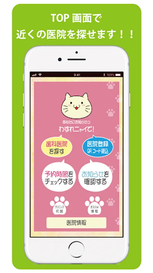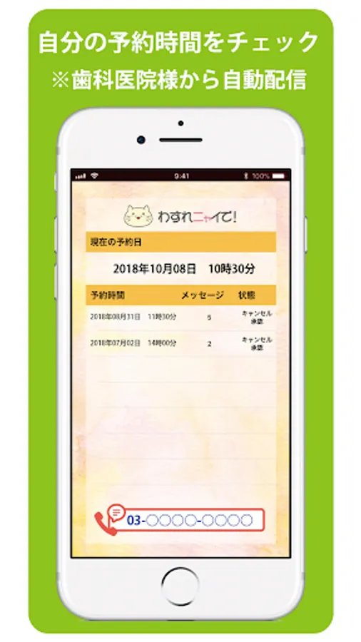 アプリ使用者のうっかり忘れを防止し、歯科医院様側のキャンセルを出来る限りブロックする、この双方向コミュニケーションツールが【わすれニャイで!】アプリです。