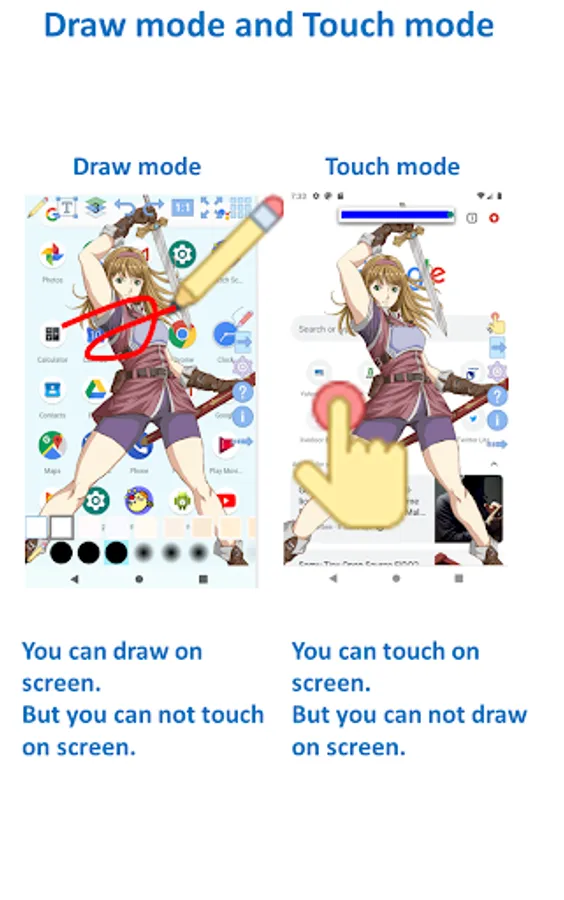 If you do not allow screen overlay with application privileges, it will act as a drawing application.