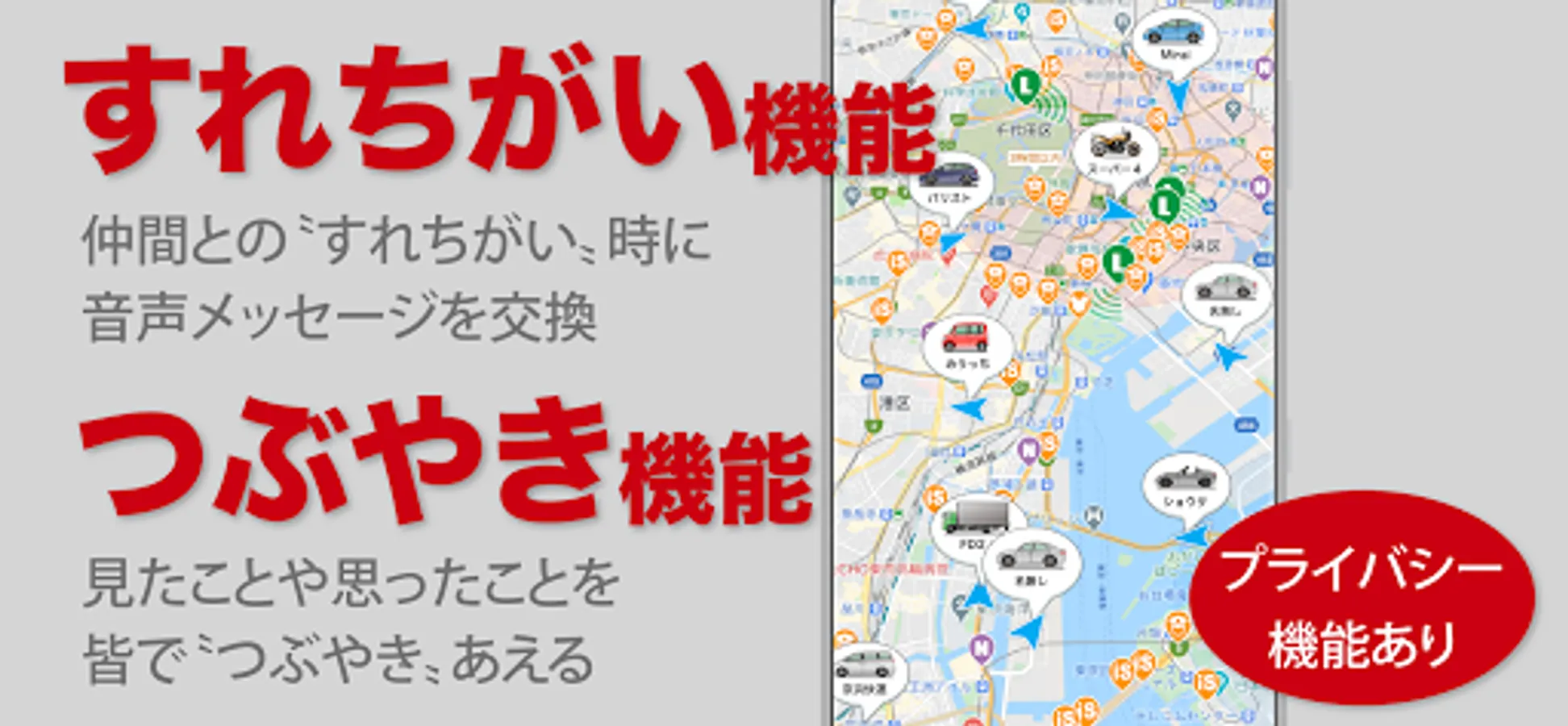 ・You can exchange messages when approaching with the passing function and check your fellow drivers on the map.