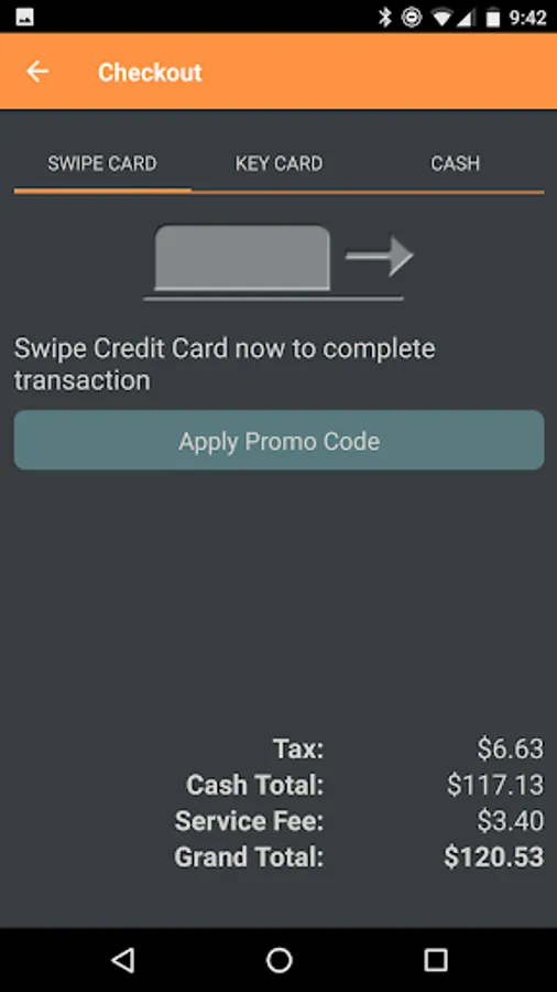 - Use the Passage card reader to accept credit card payments, or mark as paid by cash.