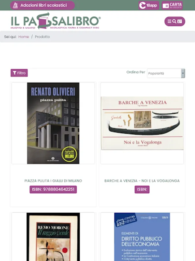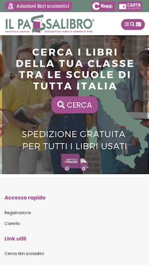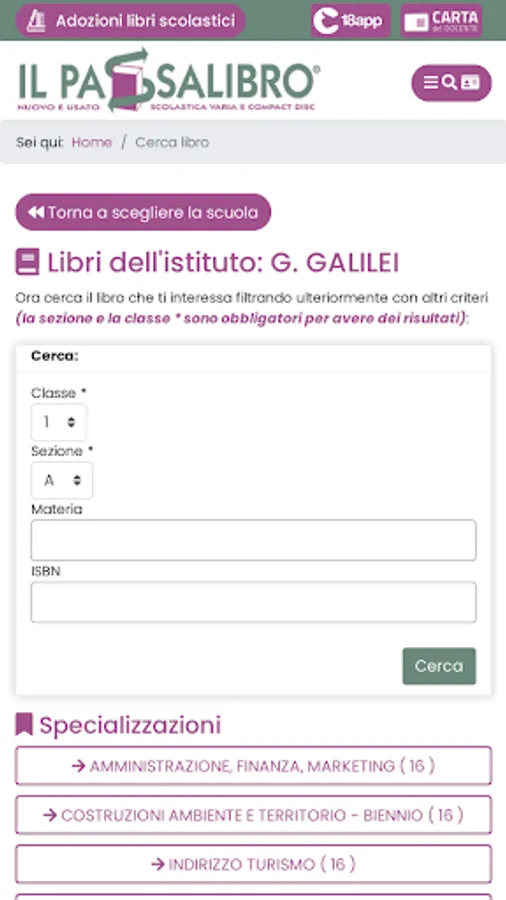 The procedure is simple, access the database of all the book adoptions of Italian schools, search for the school in your city and then search for the books that interest you, displaying all the available offers and the detailed card of each where you can choose the offer cheaper and if available, buy it or book it.