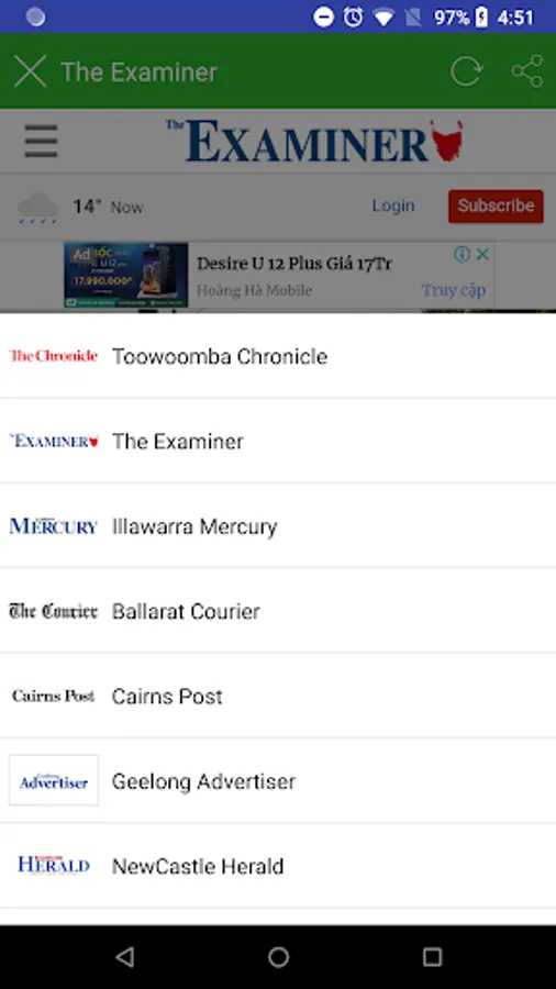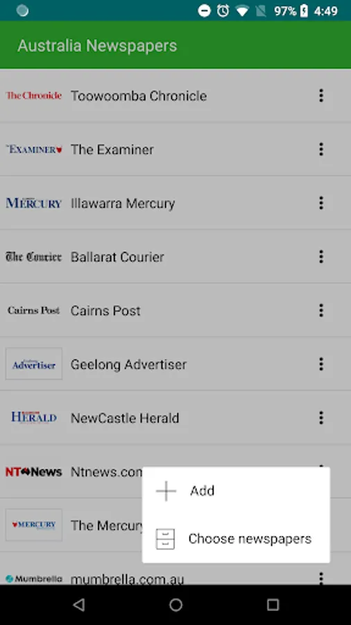 Read major Australia newspapers, news sites online. You can find news from News.com.au, Sydney Morning Herald, The Age, 9 News, Herald Sun, Daily Telegraph, The Australian, The Conversation, Courier Mail, Brisbane Times, Adelaide Advertiser, Perth Now, WA Today, Canberra Times, Sky News, The West, Goald Coast Bulletin, Sydney Today, Crikey, Sunshine Cost Daily, mumbrella.com.au, The Mercury, Ntnews.com.au, NewCastle Herald, Geelong Advertiser, Cairns Post, Ballarat Courier, Illawarra Mercury, The Examiner, Toowoomba Chronicle,