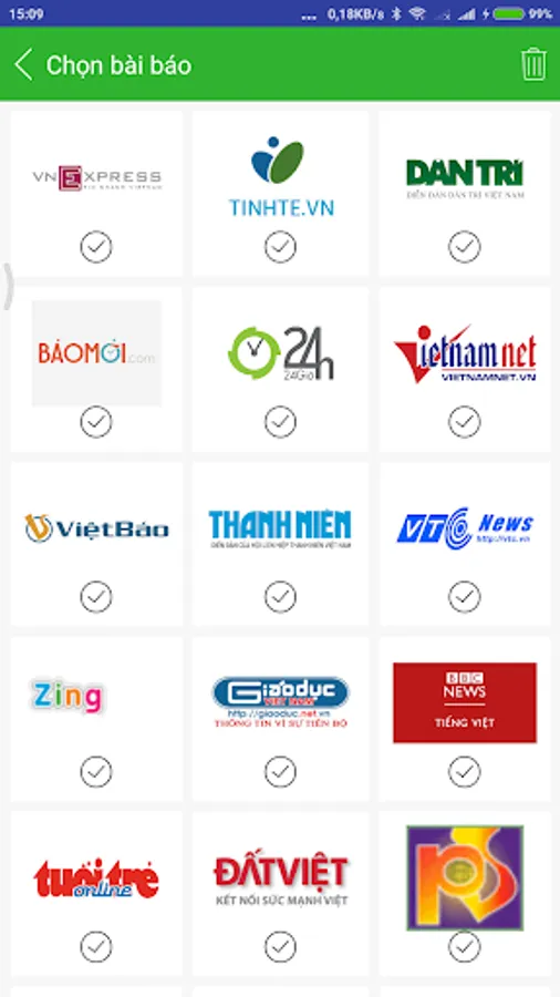 You can find news from VNExpress, Tinh tế, Dân Trí, Báo Mới, Bao 24h, VietNamNet, Việt Báo, Báo Thanh Niên, Tin tức VTC, Tin tức Zing,Báo Điện tử Giáo dục Việt Nam, BBC Vietnamese, Báo Tuổi Trẻ, Báo Người Việt, Báo Sài Gòn, Báo Đất Việt, Vietnam Daily News, Báo Gia Đình, Báo Pháp Luật, Báo Lao Động, Báo Dân Việt, Báo điện tử Tiền Phong, Tin tức 24/7, Báo Bóng Đá