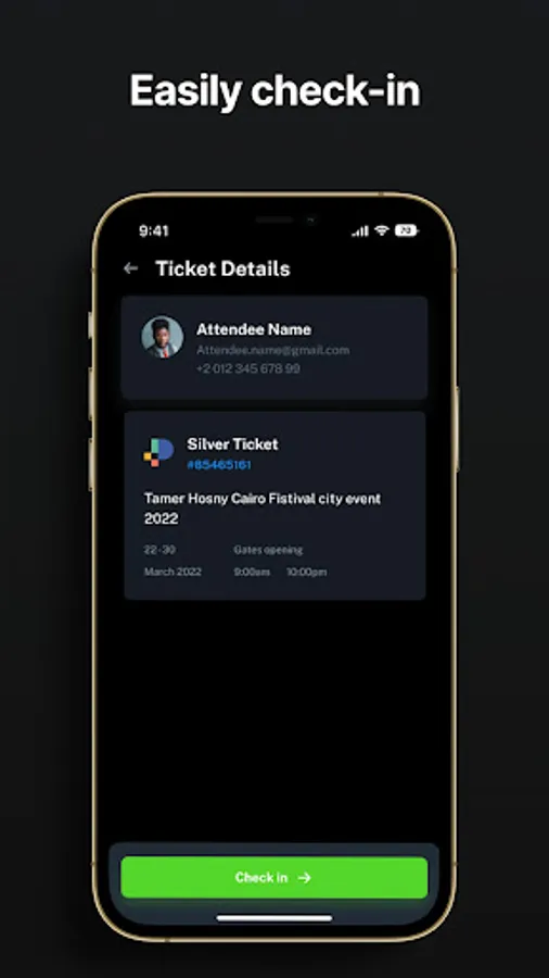 * Check-in That Works: Reliably and efficiently check-in attendees by scanning tickets with the camera on your mobile device.
