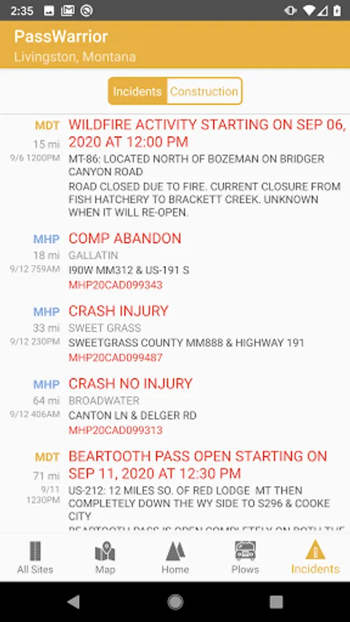 PassWarrior will help you keep tabs on Montana road conditions when you need to know before you go. With PassWarrior, you can: