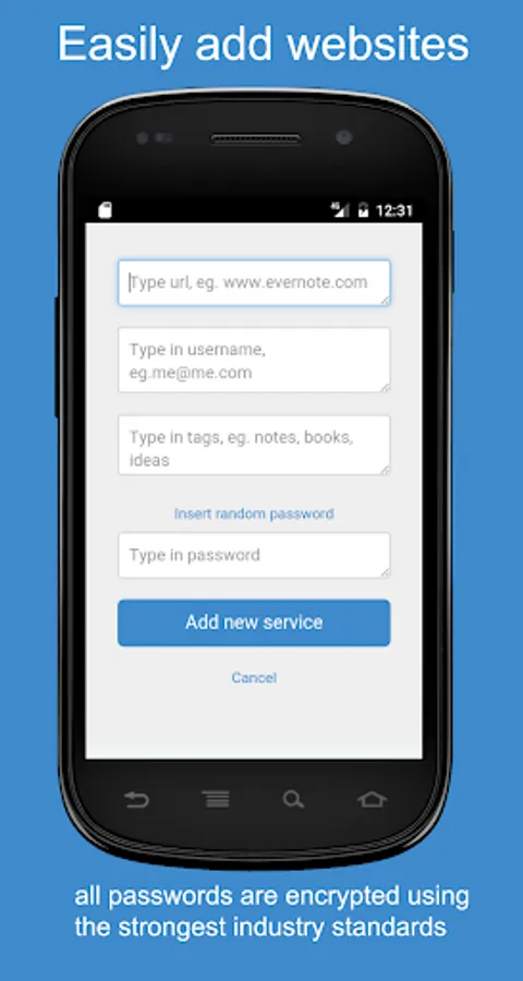 By using this app you no longer have to use the same username and password for different online services and web-sites. This will greatly improve your online privacy, and you will be less vulnerable if one of the services you use is compromised.