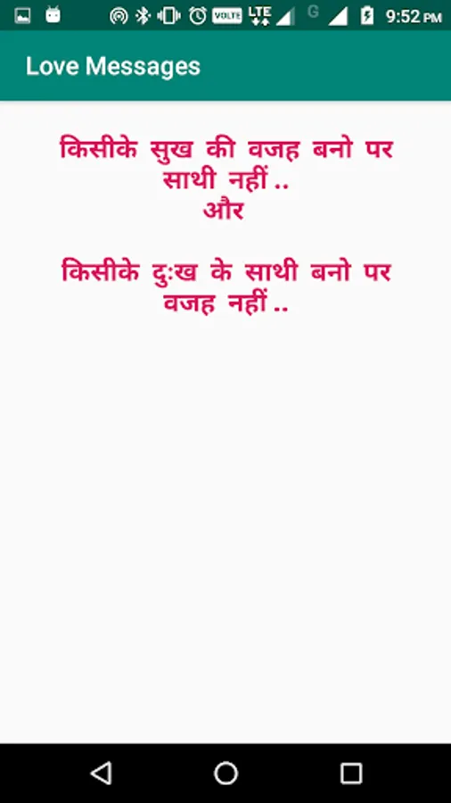 An application provides all category messages in the Hindi language. You can share the message on the social media platform. You can add your own message to your category, later on, you can use your stored message.