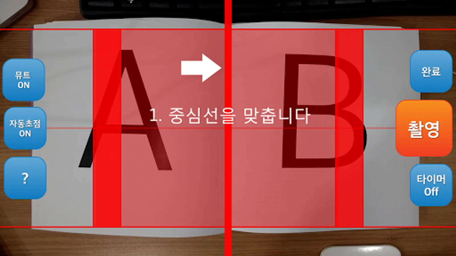 1. Align red line to your book.
