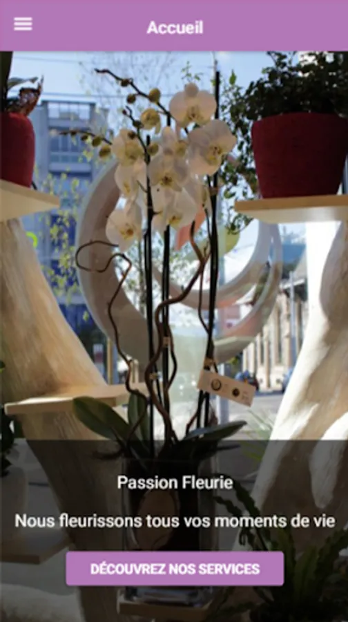Since its application, Passion Fleurie offers you the possibility of reserving your bouquets, to personalize your orders, to consult the useful infos (services, offers, novelties, events ...) but also to receive the tendencies and the news which will be interesting in form Push notifications.