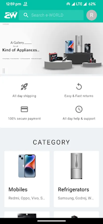 e-WORLD is online shoping app for appliances. Here you can refer to new user and can earn coin. You can use coin to purchase new items, by visiting our Physical store or You can redeem it on this app.
