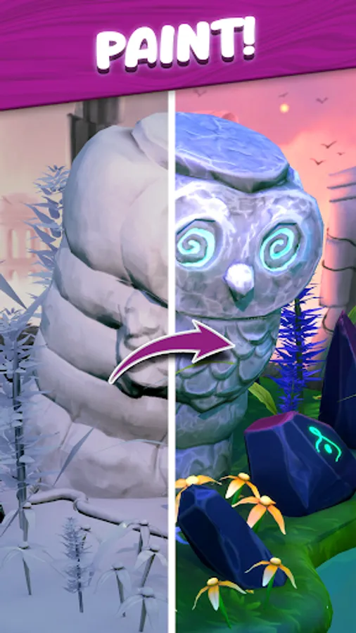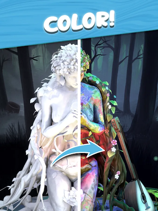 While giving colors back to the world, you will also find hidden objects and solve the mystery that lets you complete the levels of this painting game. All the models, levels & sound are exclusively designed for this game by the best modern 3D modelists & sound designers. It is the first game in the market with a 3D coloring mechanic & it's completely free to play.