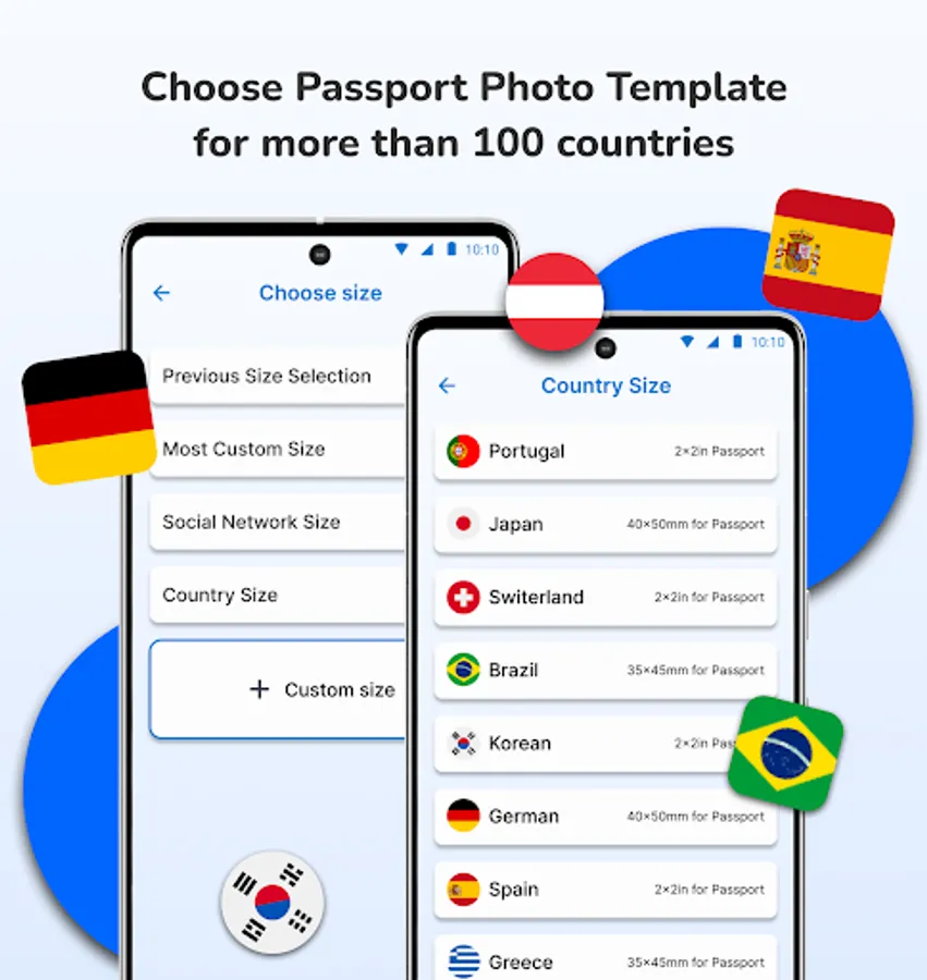 Why? This passport photo id maker studio application is a very useful and easy solution to edit photo to passport, visa image. It supports almost all countries over the world with different sizes of passport photo. If you can't find your country in this passport selfie app, don't be mad, we have optimized by combining countries with the same id photo maker into one instead of showing all country options.