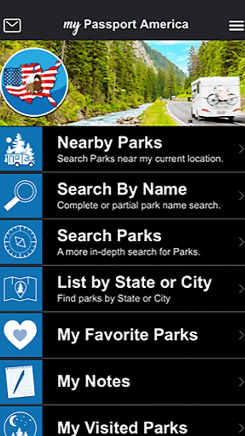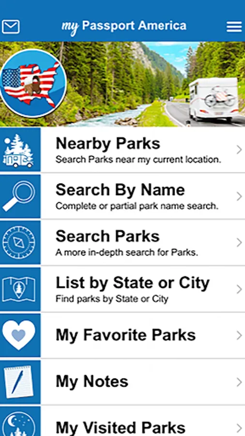 Passport America is the Original 50% Discount Camping Club since 1992. Members, fellow Campers, and RV Enthusiasts alike can hit the road with confidence with our Redesigned, ALL NEW and Improved My Passport America app! Our FREE interactive app allows you to quickly find over 1,200+ affiliated Passport America campgrounds and RV Parks by City, State and Country. Now, finding nearby campgrounds and RV Parks is easier than ever using our "Nearby Parks" feature, based on your devices current location.