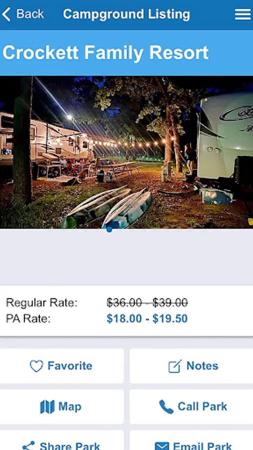 - Get Directions directly to a Campground using the Navigation app of your choice.