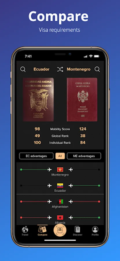 + Consult the latest visa requirements and discover your Global Mobility Score