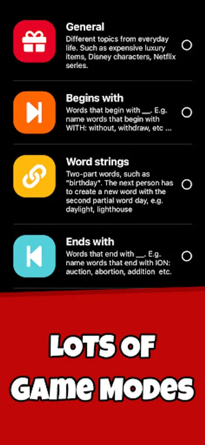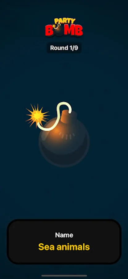 The game determines the first player to start the round. The aim is to find words in the displayed category before the bomb explodes.