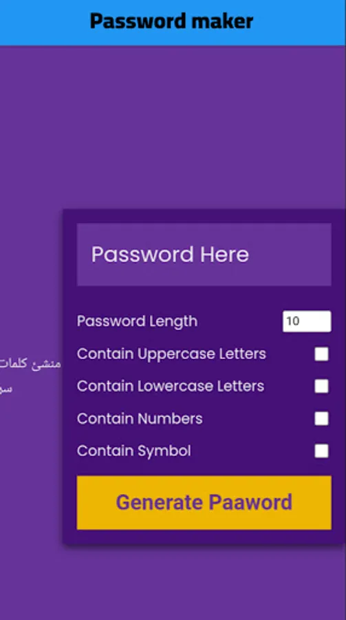 Password Maker is an application that helps you create your own password. The Password Maker application is an application that creates a password that suits you and makes it easy for you to save it in more than one way, exclusively on Google Play