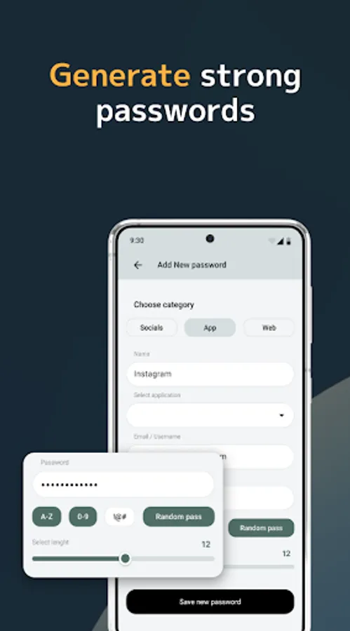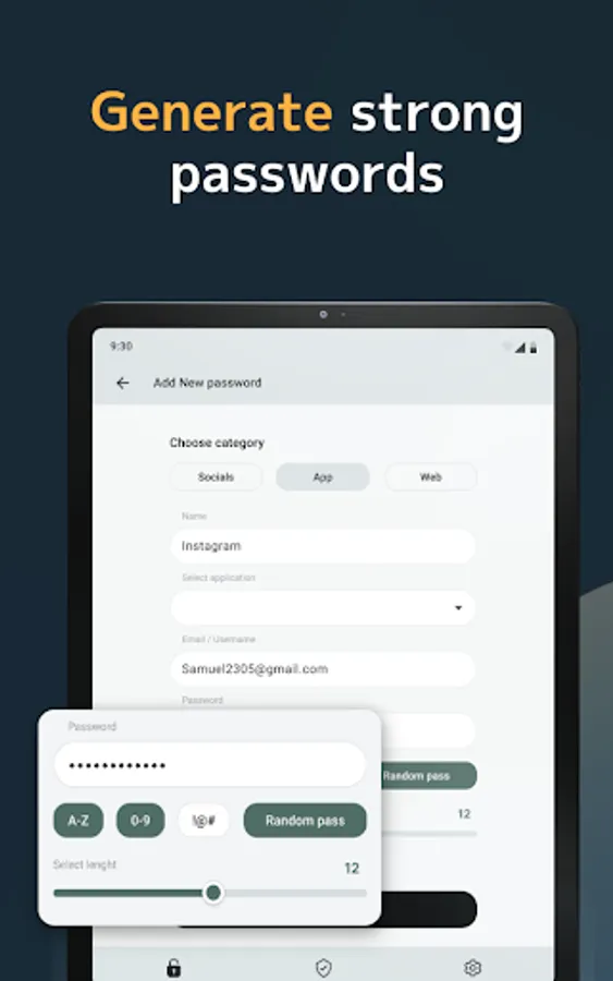 The main feature of our app is, of course, to save all your passwords and login, so you never will face a situation when you lose them. But! Also we made a useful option of creation passwords - you can easily make a strong, secure pass for any program, site or account. 🔥