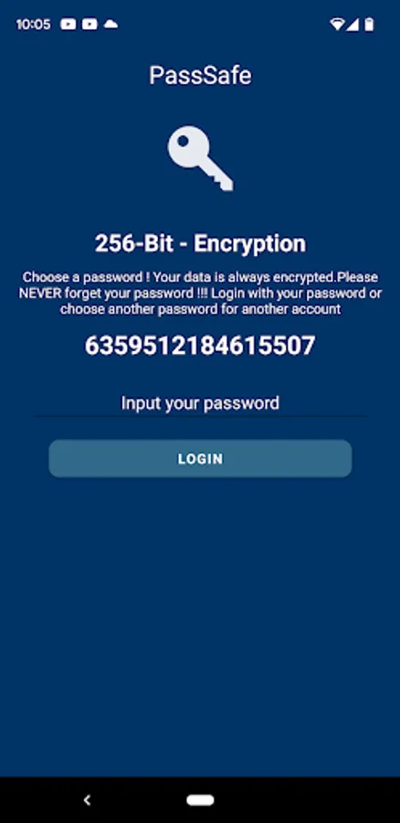 - The chosen password is "NOT" stored in the app. In addition, maximum security is ensured