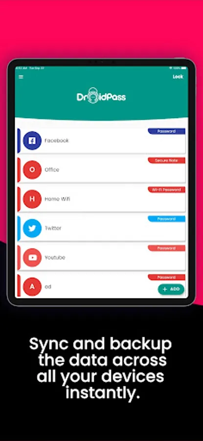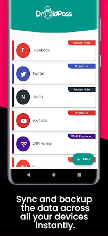 - DroidPass password saver will instantly sync and back up the data across all your devices. Anything you save on one device is available on other devices immediately.
