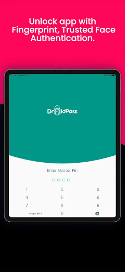 - Access via one single master pin. Everything you store in DroidPass is protected by a master pin that only you know.