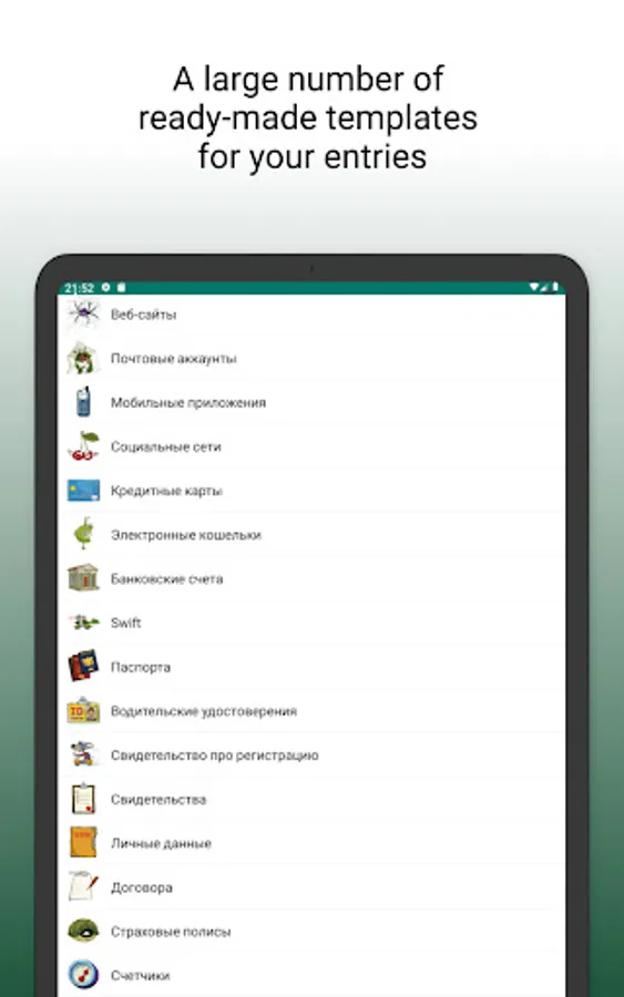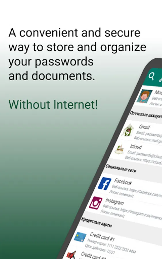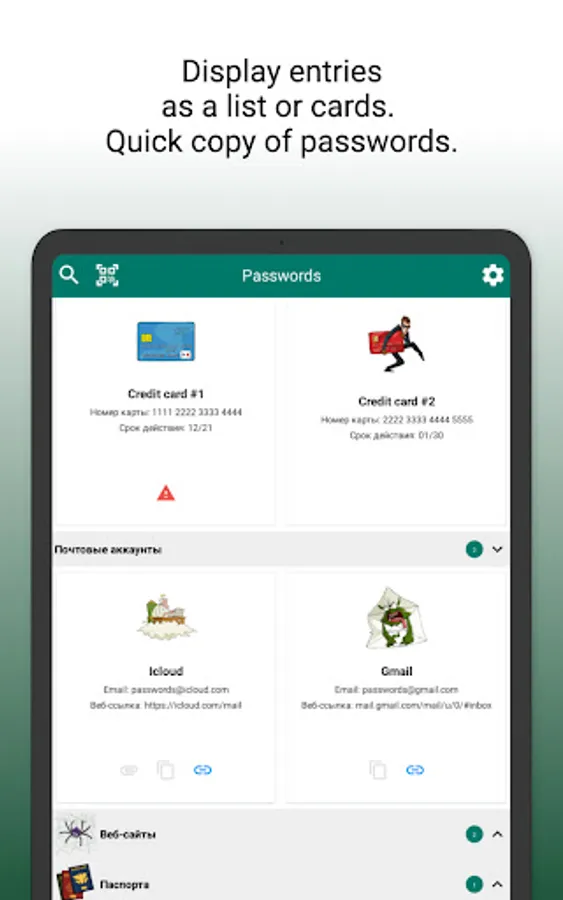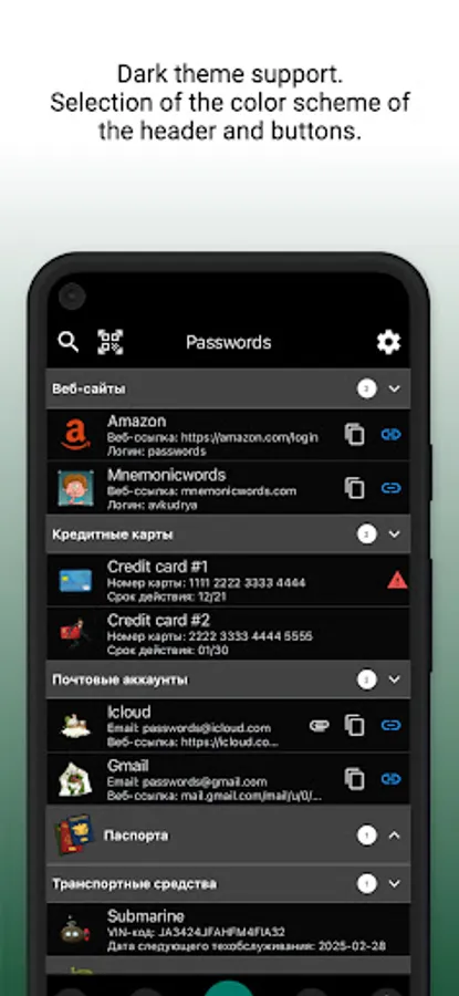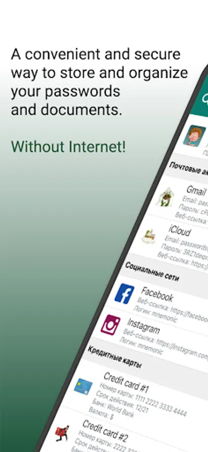 Password manager "PassWords" is a convenient and secure way to store and organize your passwords, bank cards, financial documents, and other important information.