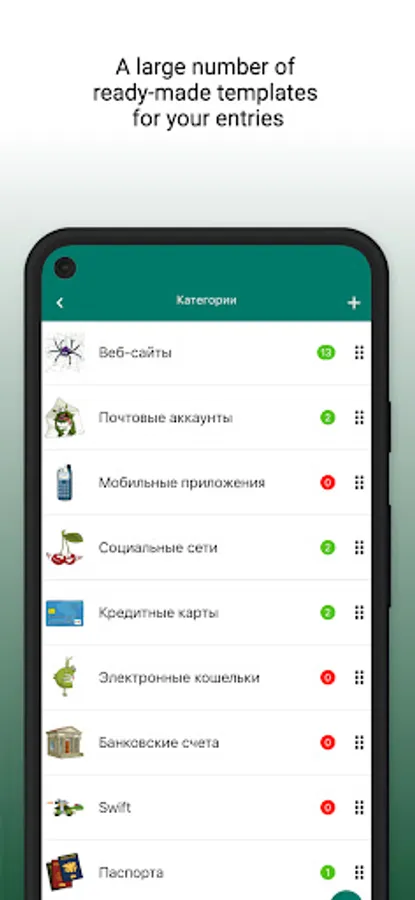 The application has a large number of ready-made category templates with the ability to create your own.