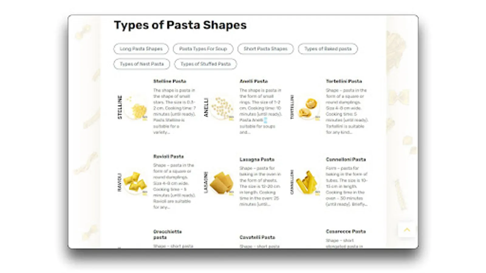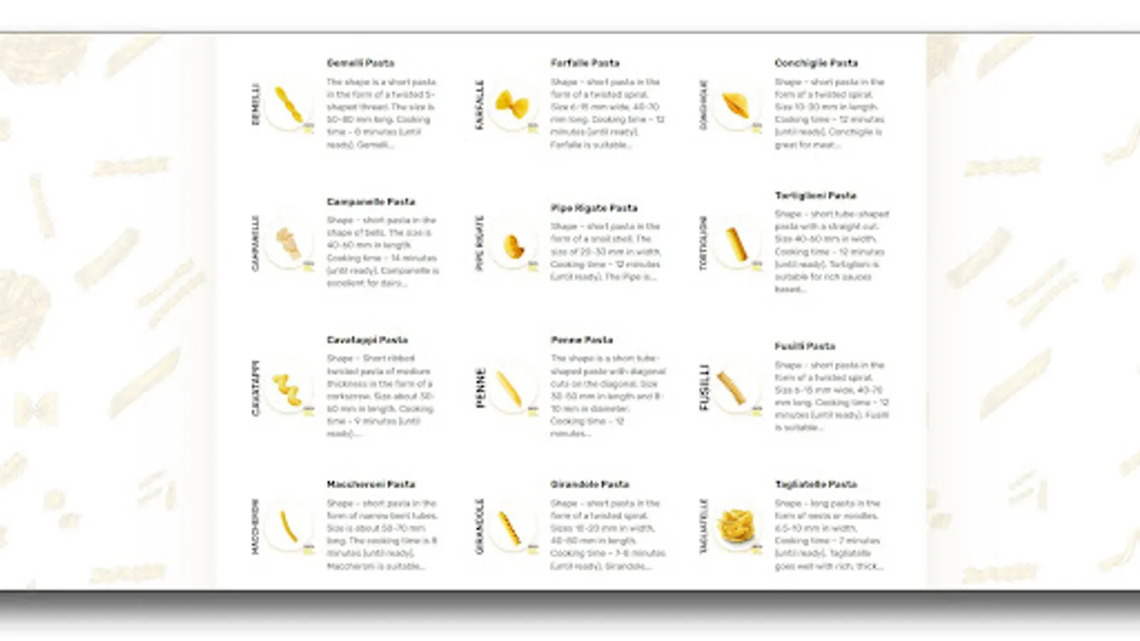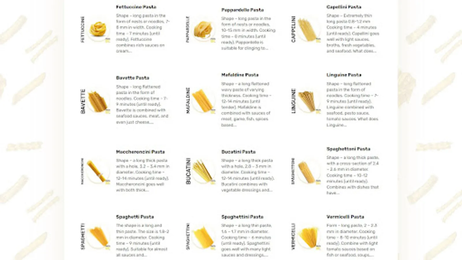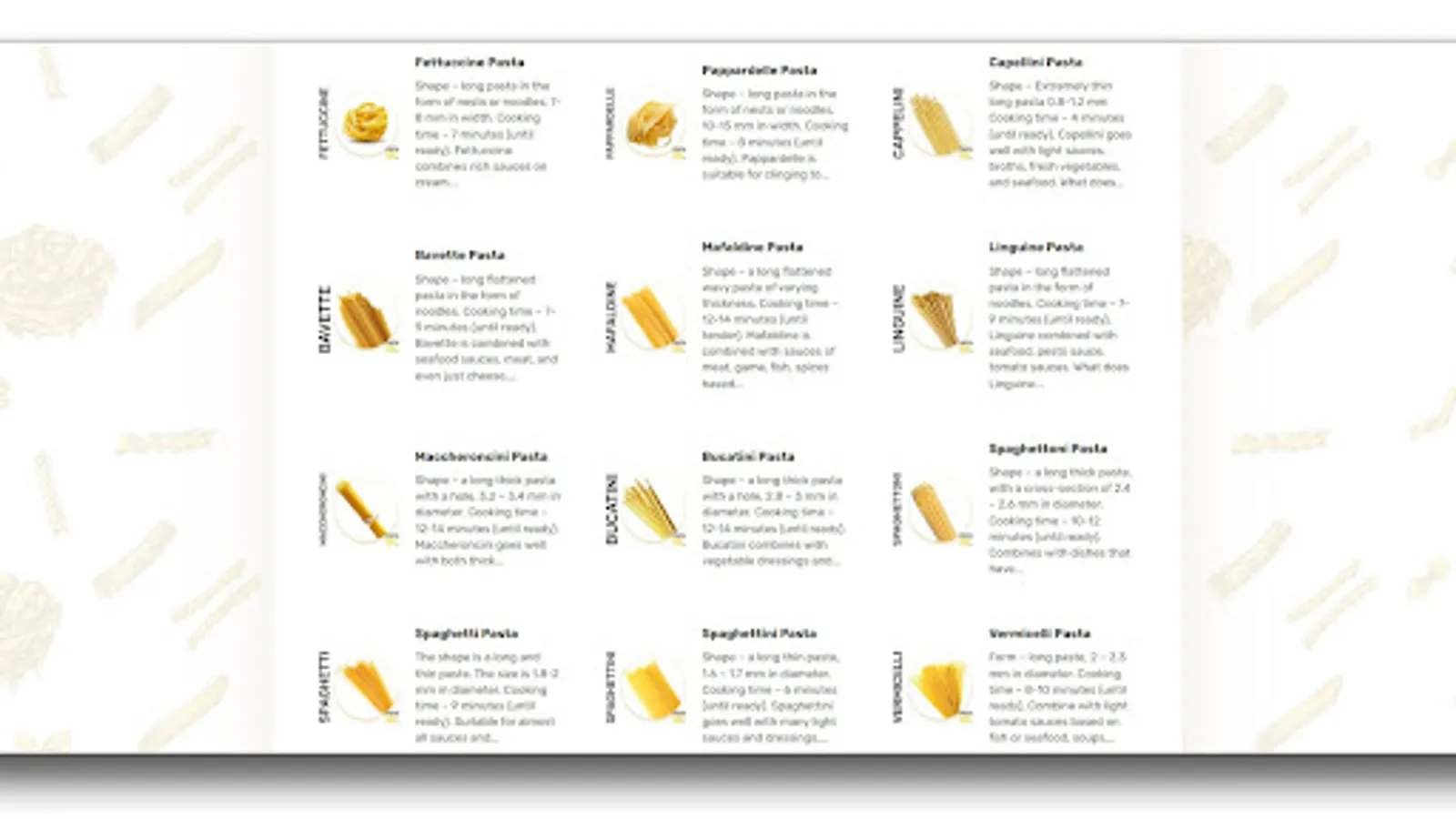 The Pasta Encyclopedia brings together the most popular types of pasta from around the world.