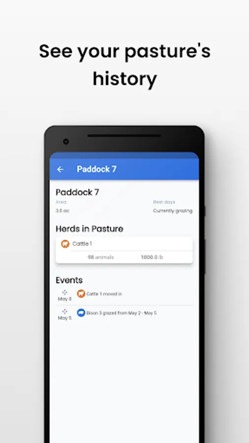 - Visualize herds and pastures: Experience current visual maps that showcase your herds and pastures. Track and view the complete history of each herd and grazing area.