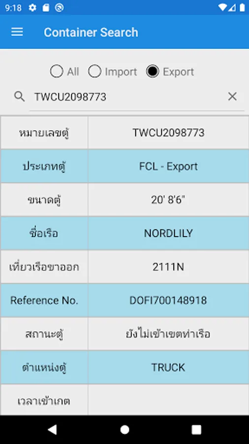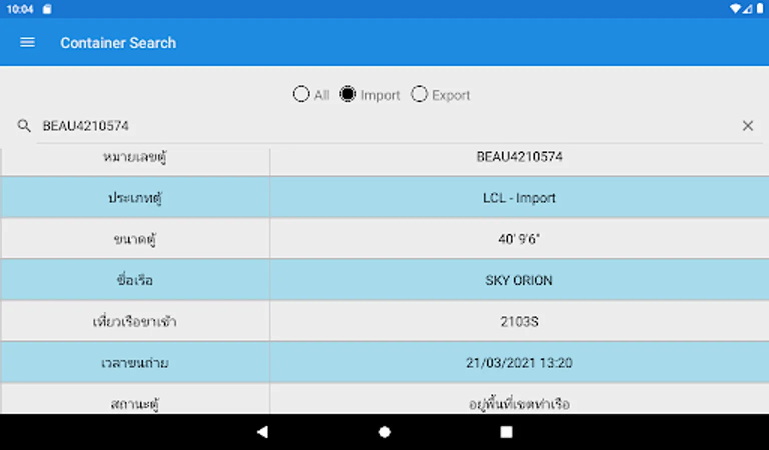 Use this app to see the container details by searching the unit number of the container and to see the vessel schedule.