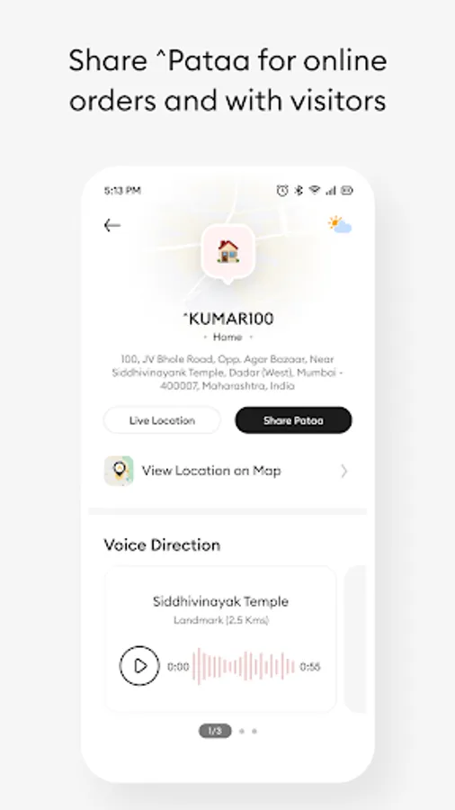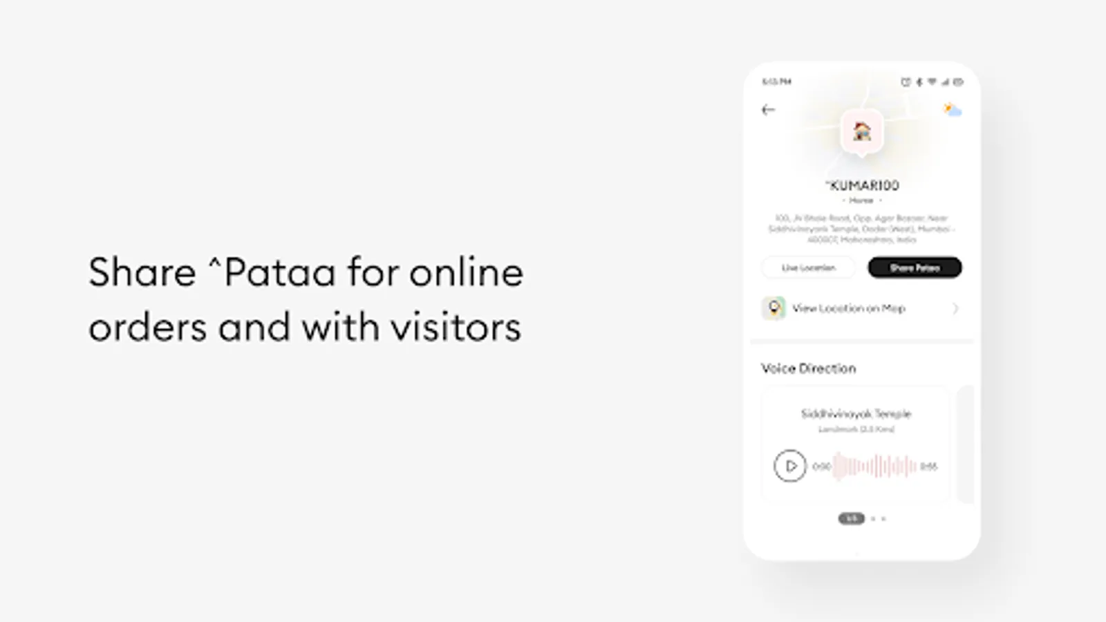 Pataa offers the convenience of recording the address in your voice or text-to-speech recording and sharing for easy navigation.