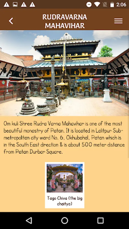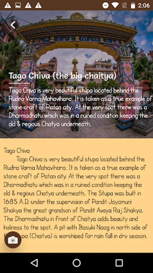 The Patan Heritage Walk Digital Media provides the official tourist information of Patan which has been endorsed by the Lalitpur Metropolitan city and the locals of Patan. The media is available in the form of IOS App, Android and Information Kiosk. In this App, you will find tourist information which has been collected in every corner of Patan. It gives information about the temples, monasteries, architecture, arts, crafts and culture of Patan. The sources of information are locals and it tells stories about local customs, values, cultures and way of life.