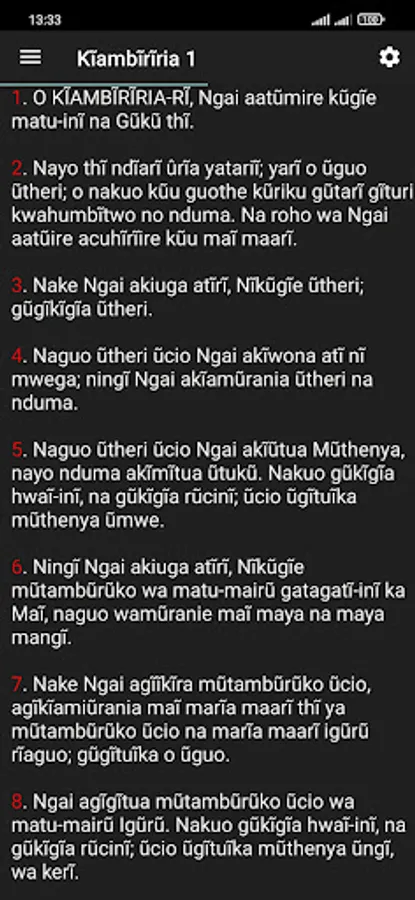 This app contain the word of God in Kikuyu Language. It consists both Old and New Testaments, and also it is written in traditional kikuyu text, therefore, it aims at preaching the word of God to everyone who understands the kikuyu language