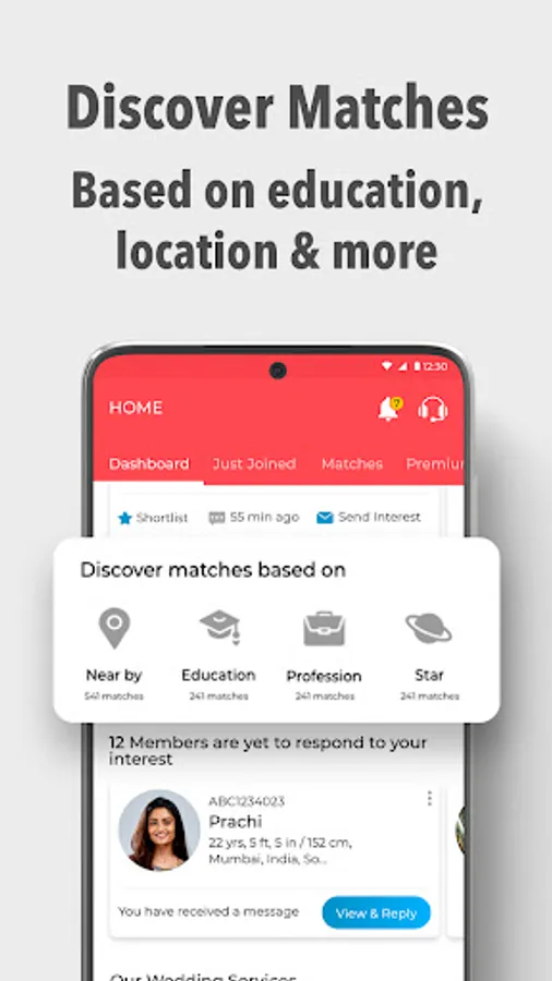 • Set up your partner preferences based on sub caste, age, location and education.