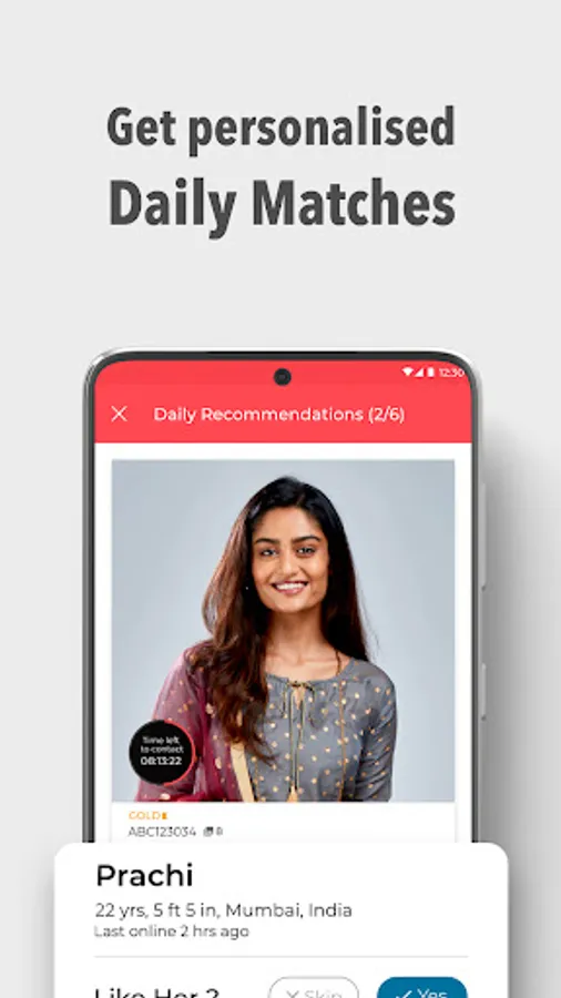 • Get your daily matches on mobile and email basis your preferences.