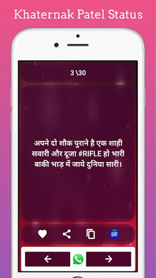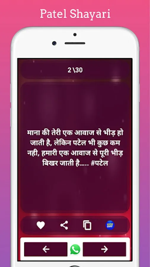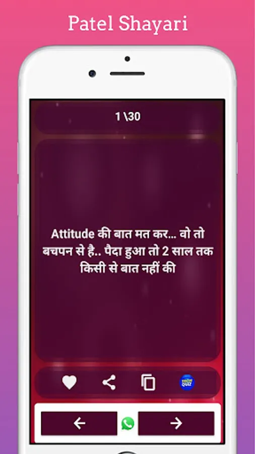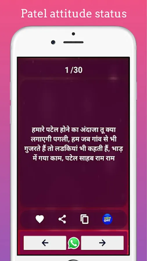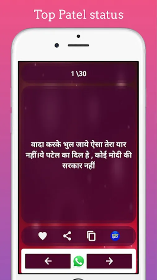 Very easy to use interface just next and right to read the beautiful Patel Attitude Status in Hindi and easy share to your friends.