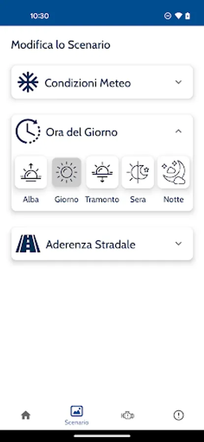 -Choice of "weather conditions": fog, rain, clear and cloudy.