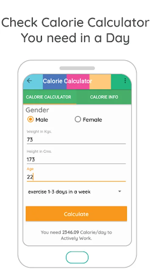 Calorie Calculator : This calculator tell you how many Calorie's are required in a day.