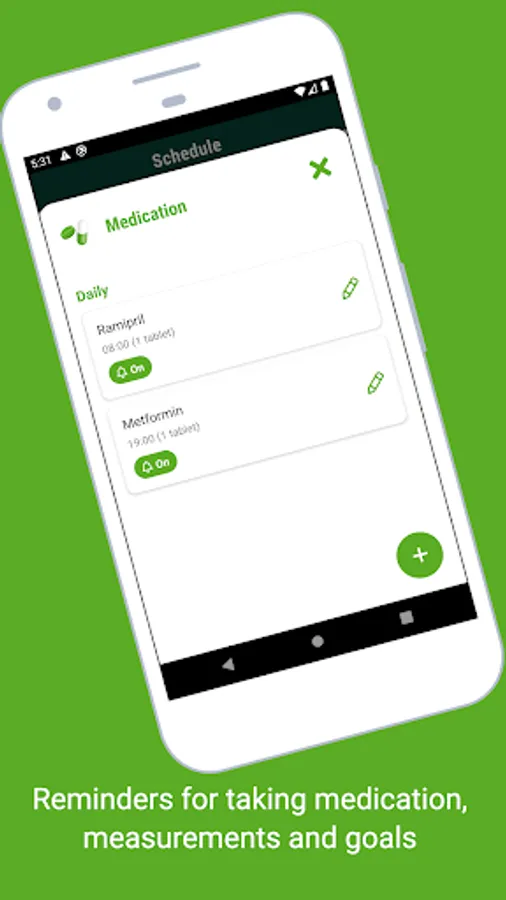You can enter medication that you need to take regularly in the app so it sends you a push notification reminding you to take the medication at the right time. Once you’ve taken the medication, you have completed a goal in your daily schedule.