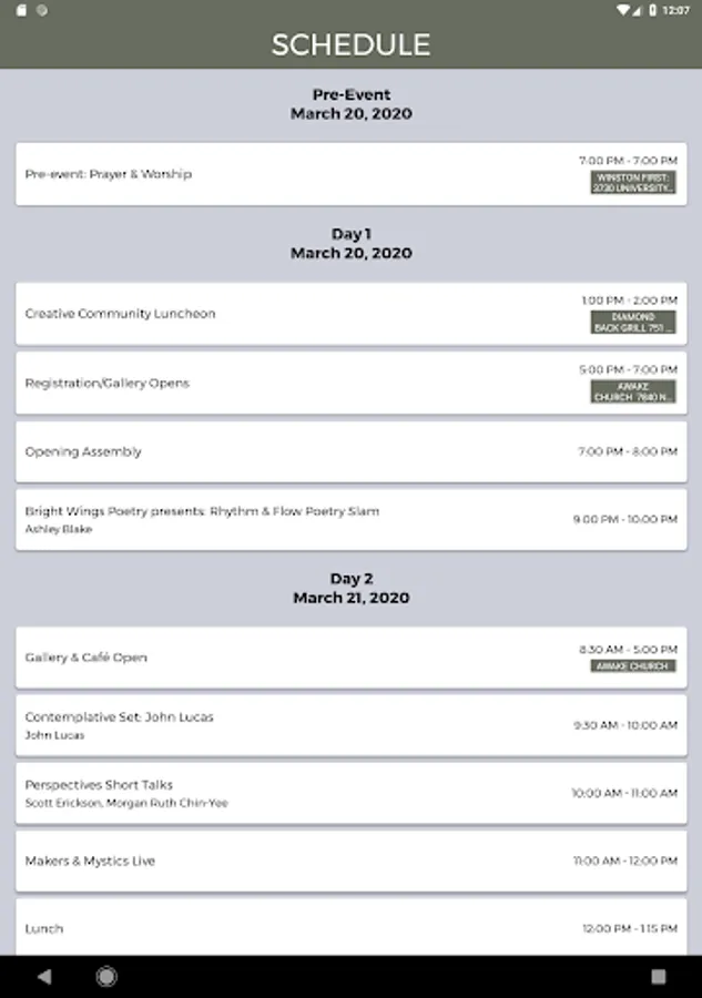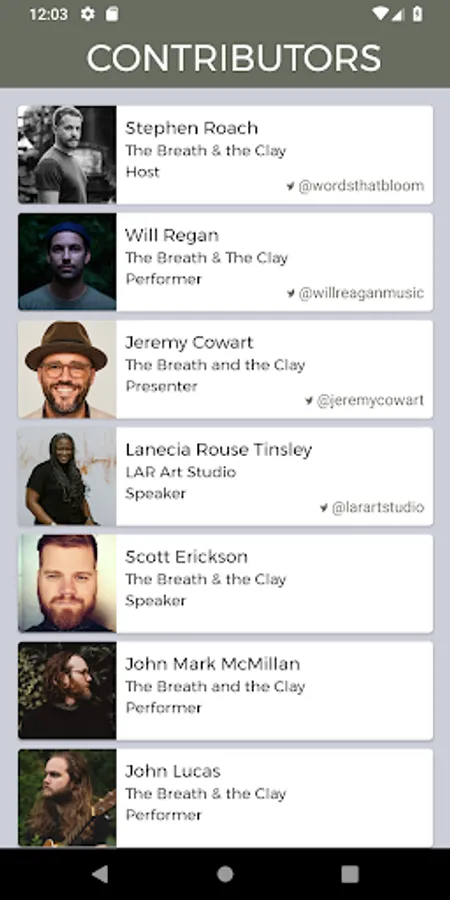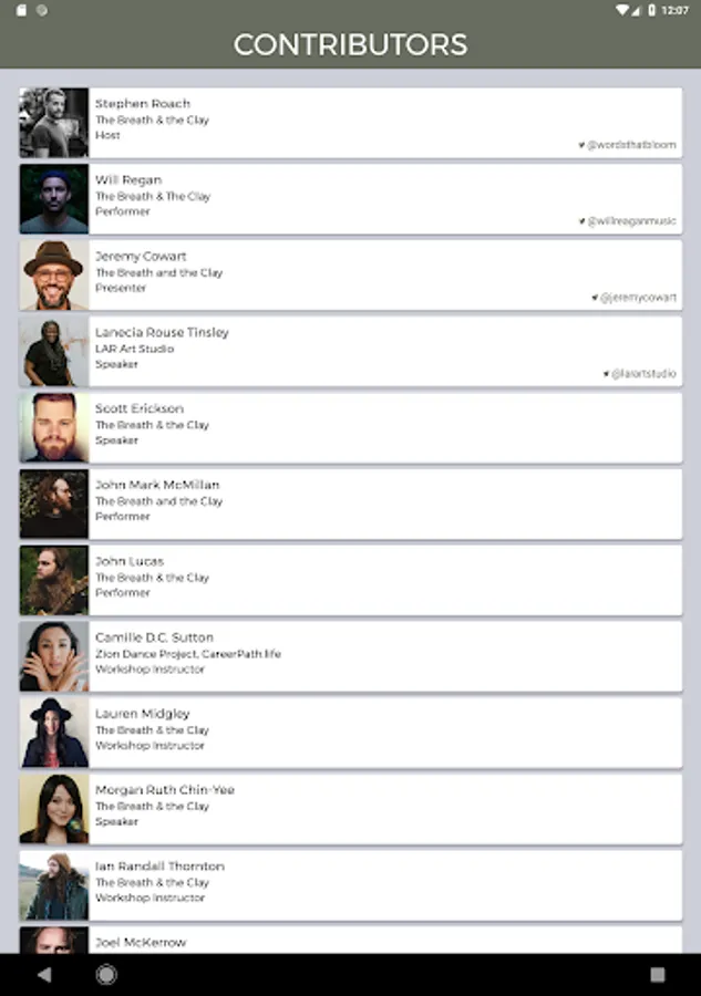The Official app for The Breath and the Clay creative arts event. View our roster of speakers, performers and exhibiting artists. The app includes detailed descriptions of workshops, keynotes and community partners. The Breath & the Clay is a three-day event exploring the intersections of art, faith and culture.