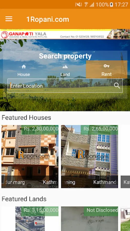 1Ropani.com brings together property information - location, price, pictures, interactive maps and property features through dynamic website, mobile interface and SMS. We welcome the participation from real estate players - sellers, renters, agents, builders, developers, investors for dissemination of information in trustworthy environment.