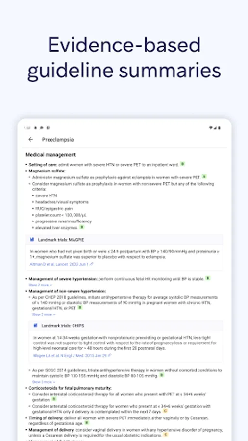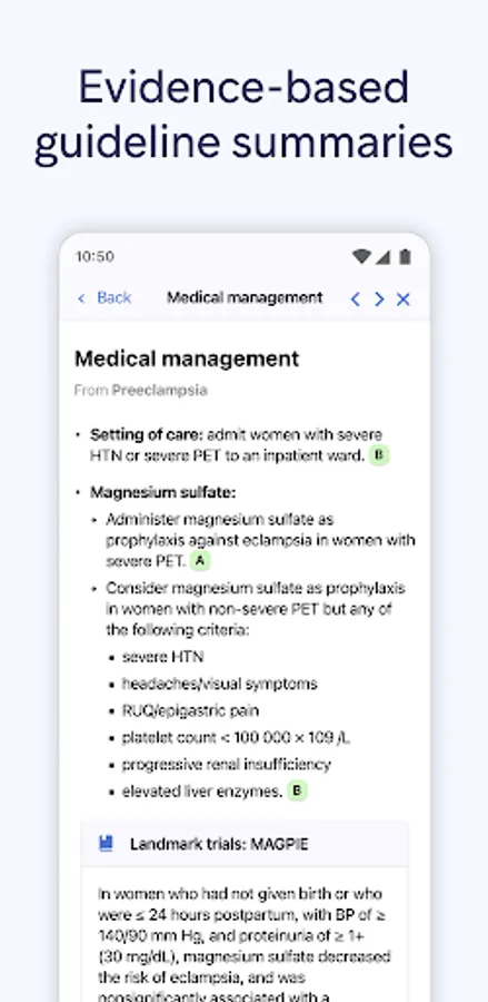 • Find what you need, faster, with condensed summaries of evidence-based clinical guidelines.