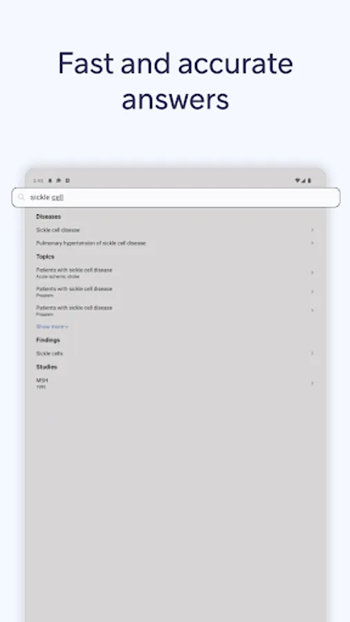 • Quickly reference landmark trial summaries for 500+ diseases, all in one place.