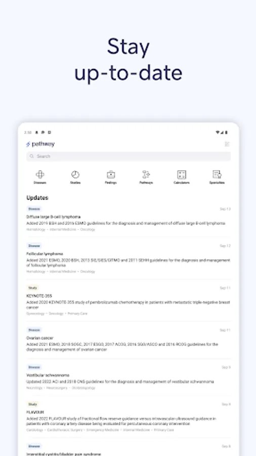 • Stay up-to-date with notifications for practice-changing updates tailored to your specialty.