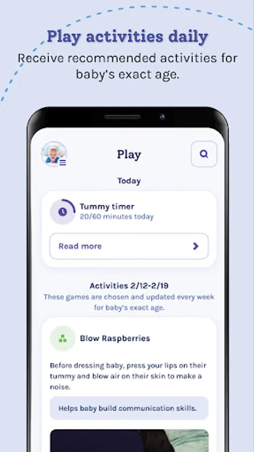 • Milestones specific to baby’s age, which can be tracked and checked off in their profile