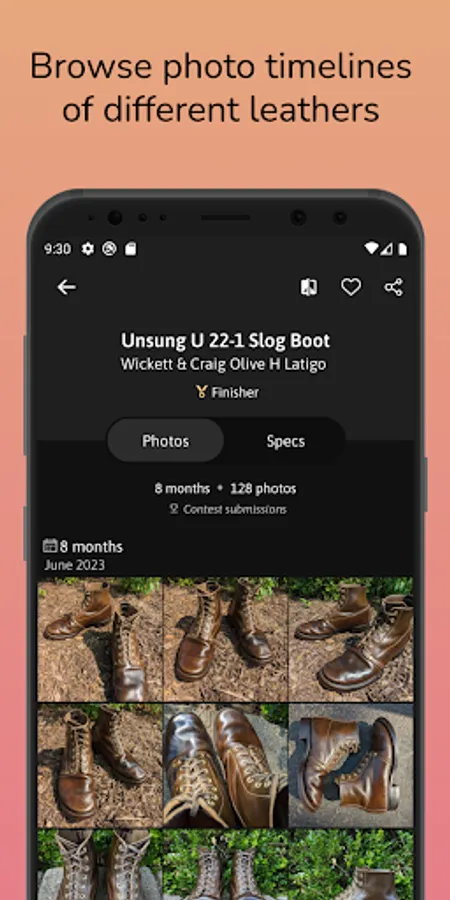- Browse photo timelines to discover the aging and progression of different boot and shoe leathers.
