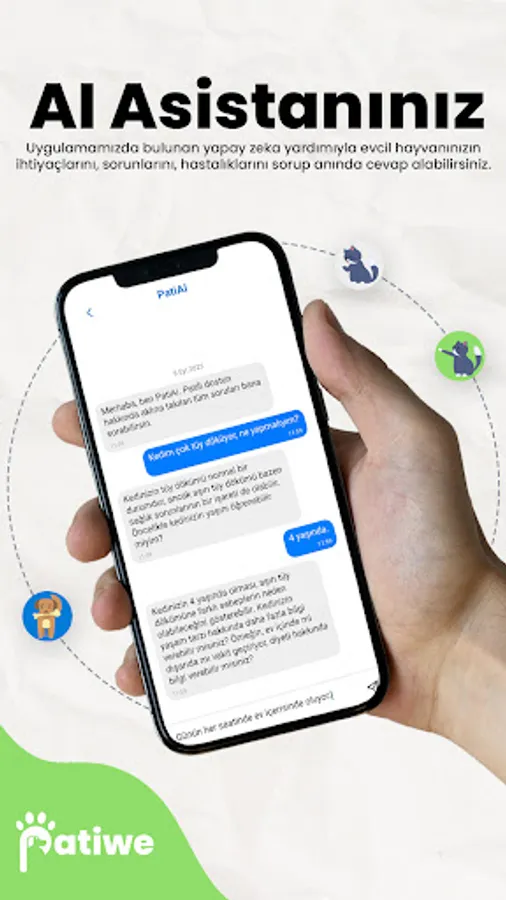 Thanks to Pati-Ai Chat, created using artificial intelligence, you can get instant answers to all questions about your pet friends. Pati-Ai is an advanced application that only answers pet-related questions. Moreover, you can ask this application anything you wonder about all your pets.