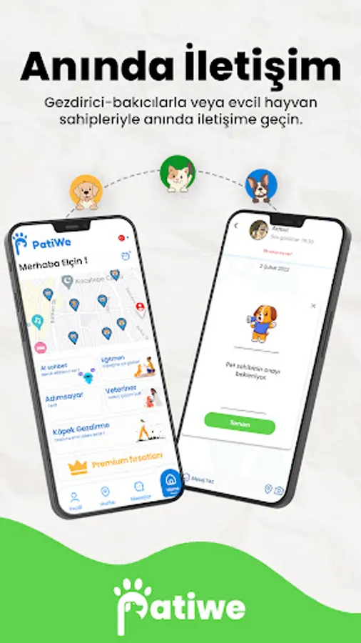 PatiWe is a mobile application where you can find a walker for your dog and chat with veterinarians and trainers online. Through this application, you can find hundreds of walkers in your city, consult the veterinarian about your pet's health status, and provide professional support for training your dog. At the same time, you can get answers to all your questions about your pets with one click with the artificial intelligence Pati-Ai Chat.